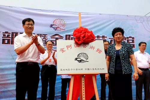 活动现场,中国工艺美术协会会长周郑生、市委宣传部副部长吴作江分别致辞,省、市、区领导共同为工匠部落暨金阿山艺术馆揭牌。揭牌仪式后,市委、市政府,区委、区政府的相关领导和中国工艺美术协会领导及全国各行业、各流派的工艺美术大师共同参观了工匠部落暨金阿山艺术馆。